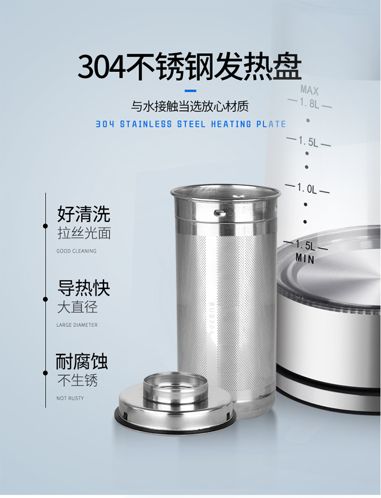 48. Color: 1.8L intelligent temperature control electric kettle with strainer