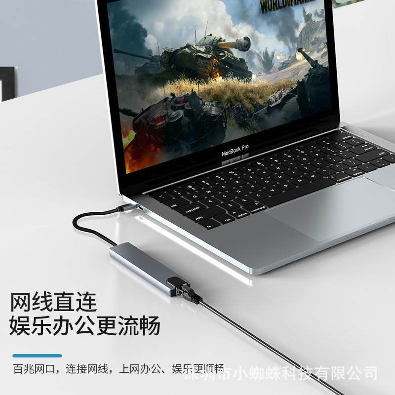 3. Model: 8-in-1 (type-c to 100m network port+2usb+hdmi+usb-c+pd)