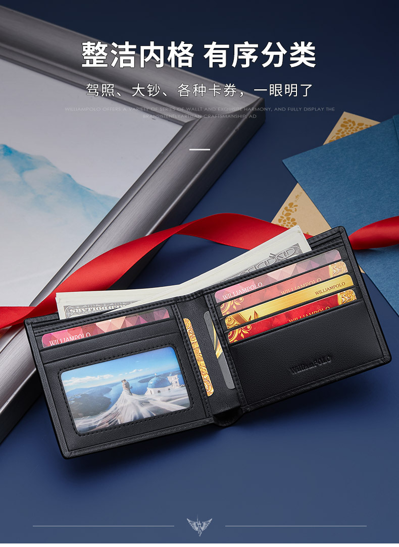 King Paul Men’s Short Leather Wallet Men’s High Sense Fashion Simple Card Bag Coin Purse Trendy Card Bag